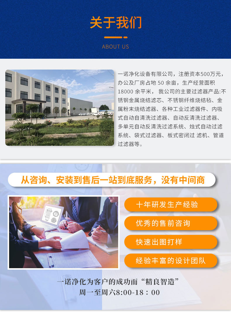 滤芯各密封面采用氩弧焊接工艺接合,过滤层采用多褶折叠工艺,构成一个完整的滤芯,不锈钢纤维烧结毡是一种采用不锈钢纤维经高温烧结而成的多孔深度形成过滤材料。